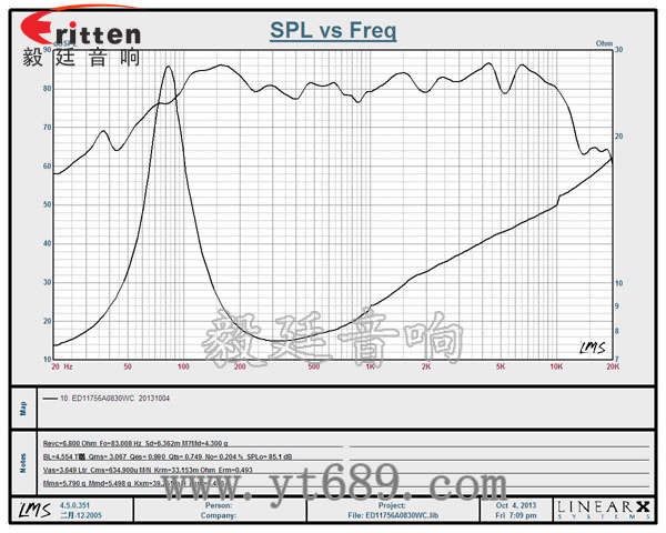 ★頻率范圍(freq response):83Hz~13KHz