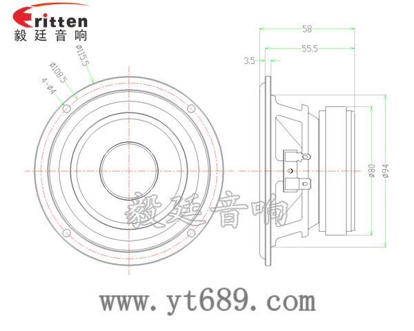 4寸圓形鐵盆架外磁全頻喇叭,采用的是高性能鐵氧體,靈敏度高,低頻厚實(shí)。