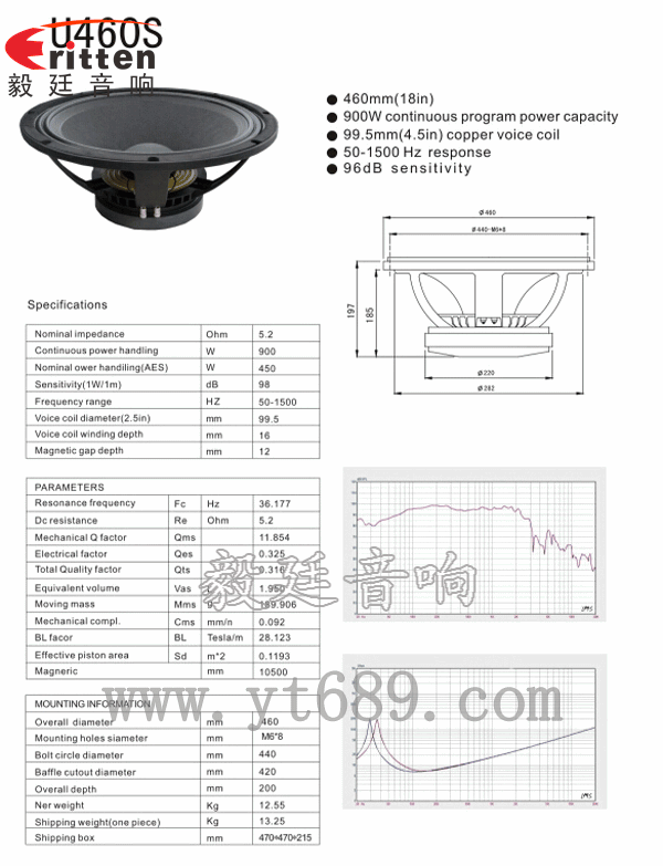 此款18寸喇叭定制-喇叭生產(chǎn)廠家,額定功率為450W,最大功率為900W,音色清晰、自然,優(yōu)異用于大型用于舞臺(tái)音箱,KTV音箱、演唱會(huì)音箱、廣場(chǎng)音箱上,強(qiáng)勁音效超乎想象,足以讓搖滾發(fā)燒友為之瘋狂。