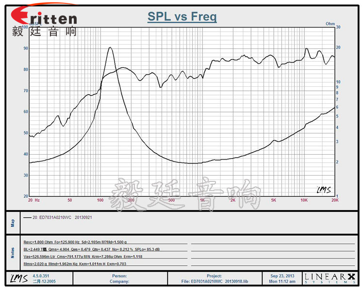 ★頻率范圍(freq response):126Hz~20KHz