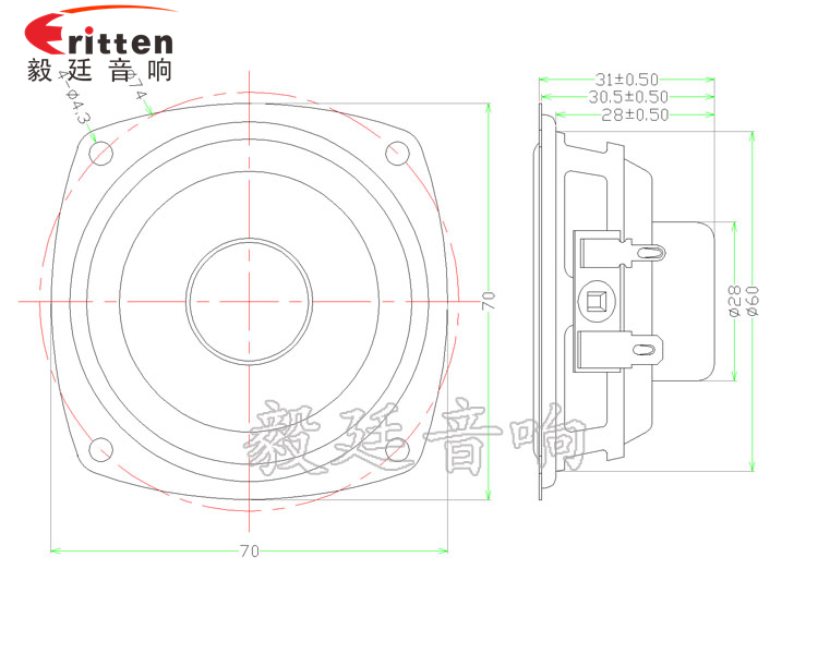 此款70mm多媒體音箱喇叭,優(yōu)異用于藍(lán)牙音箱、無線桌面音箱、HIFI音箱安裝單元上,低頻震撼,是一款非常棒的喇叭;
