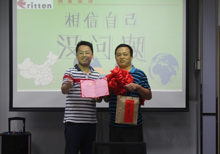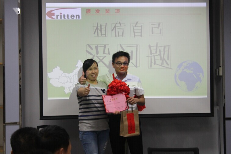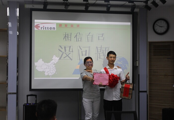 男兒當(dāng)自強(qiáng),責(zé)任勇?lián)?dāng)。作為毅廷公司的中流砥柱,奮勇?tīng)?zhēng)先,開(kāi)拓創(chuàng)新,他的名字會(huì)銘刻在毅廷的功勞薄上!接下來(lái)為大家頒發(fā)的是毅廷7月月樶高銷(xiāo)售額獎(jiǎng)的獲得者,他以57萬(wàn)的銷(xiāo)售額獲得7月月樶高銷(xiāo)售額獎(jiǎng),他就是帥氣陽(yáng)光的外貿(mào)部銷(xiāo)售員朱劍友
