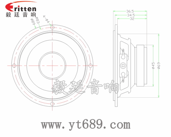 毅廷音響4寸高端品牌重低音喇叭正反面