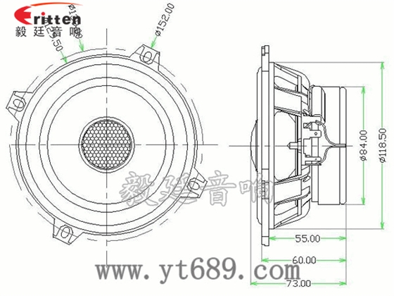6寸50瓦汽車音響全頻同軸喇叭
