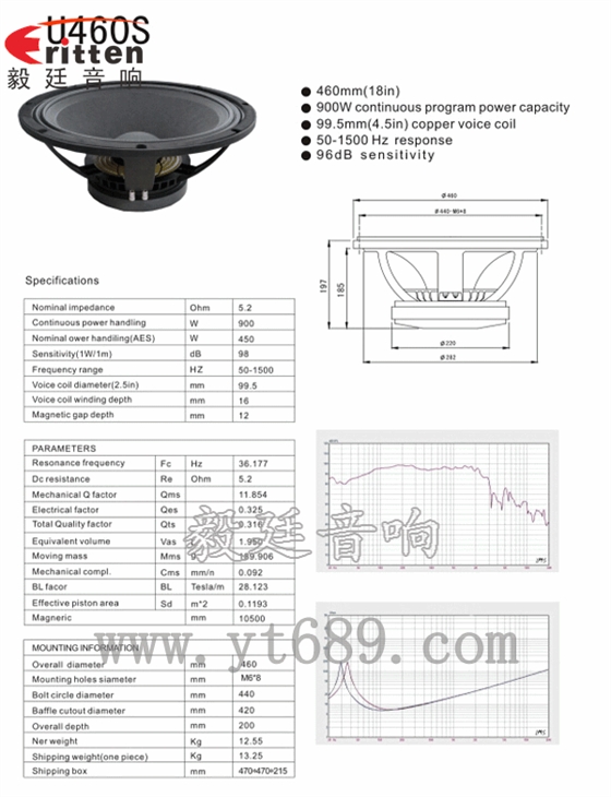 ★靈敏度(SPL):98dB(1M/1W)