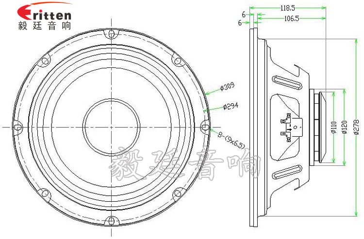 12寸圓形鐵盆架外磁中低音喇叭,采用靈敏度達(dá)到95dB,給喇叭提供了超強(qiáng)的動(dòng)力,和穩(wěn)定性;