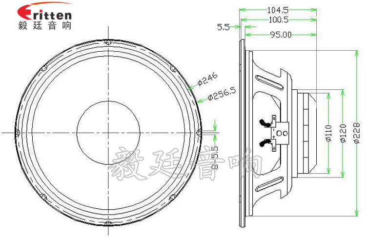 10寸圓形鐵盆架外磁重低音喇叭,采用了釹鐵硼磁鋼外磁設計,磁性超強,永久不退磁,靈敏度達到95dB,給喇叭提供了超強的動力,和穩(wěn)定性;