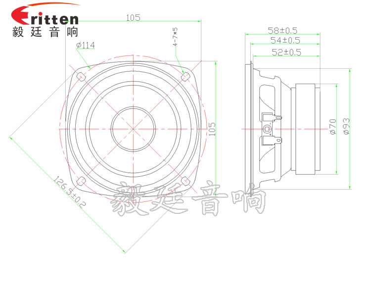 4寸高端品牌重低音喇叭,蘋果型銀色鐵盆架外磁重低音喇叭,采用了高性能的磁鐵,使音質(zhì)更加穩(wěn)定;
