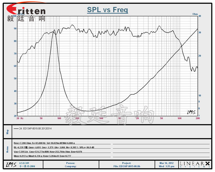 ★頻率范圍(freq response):83Hz~10KHz