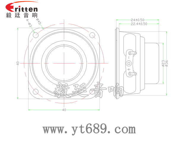 40mm方型鐵盆架內(nèi)磁全頻喇叭,采用的是接線板位置較寬,為了散熱可以更加好,音色更加柔和;