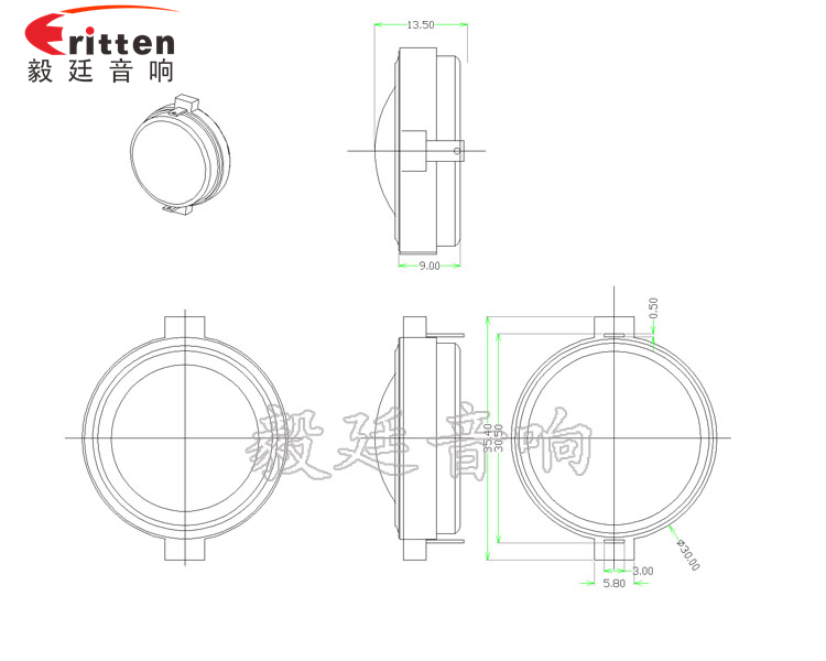30mm圓形內(nèi)磁高音喇叭,釹鐵硼的磁鋼,磁性強,動力足,永久不退磁;