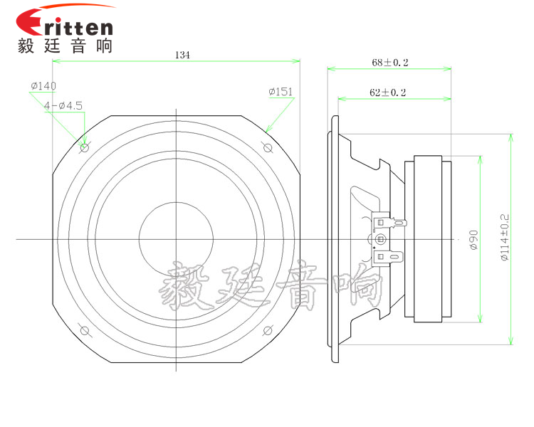 5.25寸方形鐵盆架中低音喇叭,采用的是高性能鐵氧體磁鋼,為揚聲器在大動態(tài)工作時提供充足動力,充分展示動態(tài)特性好的特點,有利聲音的更好爆發(fā)力;