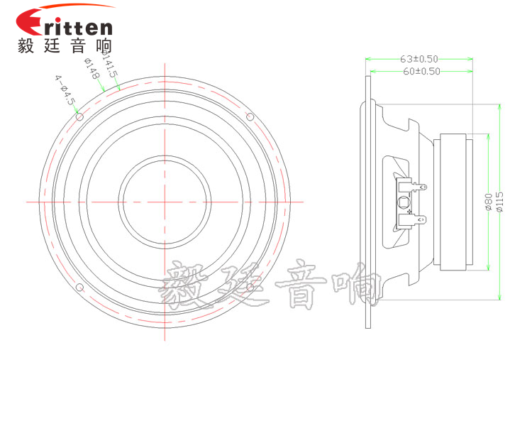 此款橡膠邊紙盆,額定功率為30W,最大額定功率為60W,性能穩(wěn)定,音質(zhì)悅耳;