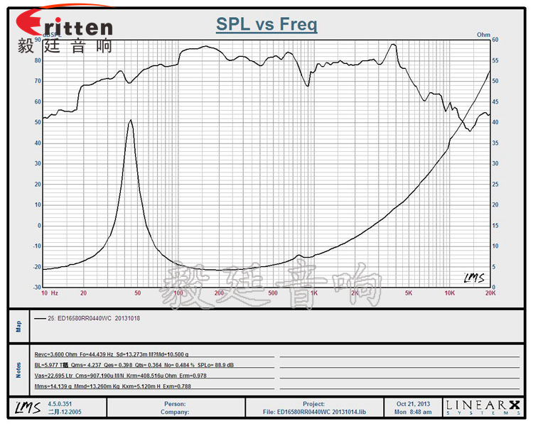 此款頻率范圍44Hz~4KHz,音色清晰、飽滿。優(yōu)異用于6.5寸4歐40WHIFI音箱喇叭、家用多媒體音箱等,東莞毅廷音響喇叭廠家工程師,專業(yè)的團隊,10年專注研發(fā),受到廣大的客戶的信賴。