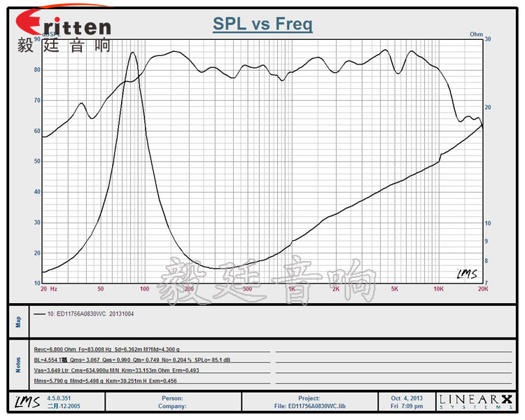★頻率范圍(freq response):83Hz~13KHz