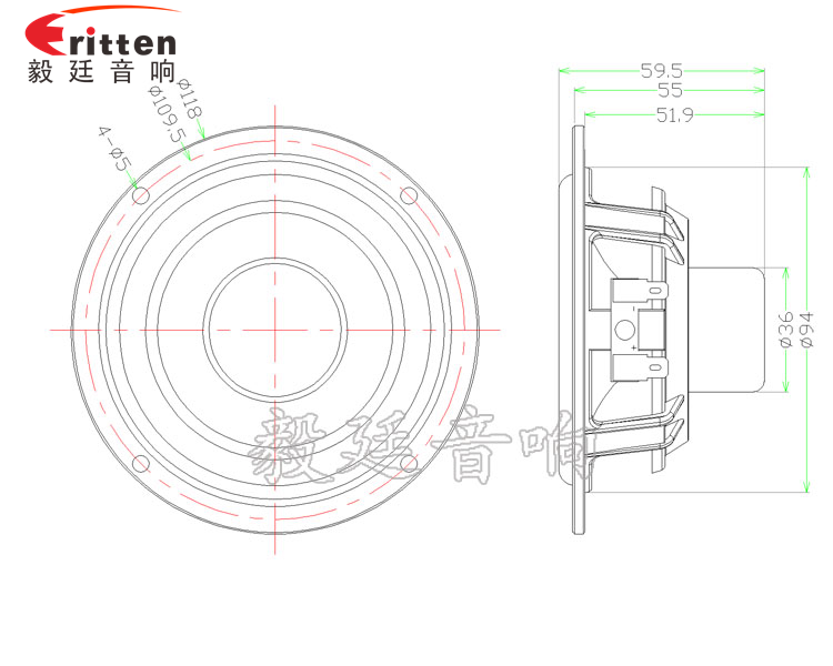 117mm圓型塑料盆架內(nèi)磁中低音喇叭,采用的是高性能稀土高強(qiáng)磁,新穎的外觀,質(zhì)感強(qiáng);