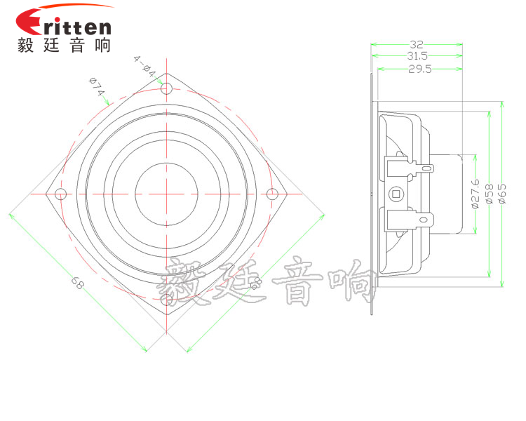 68mm異型鐵盆架內(nèi)磁全頻喇叭,采用了性價(jià)比高的鐵盆架,外觀漂亮,磁鋼采用了被譽(yù)為磁鋼之王的釹鐵硼,磁性強(qiáng),動力足,永久不退磁;