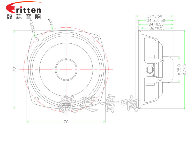 78mm蘋果型烤黑鐵盆架內(nèi)磁全頻喇叭,采用高性能稀土高強(qiáng)磁,黑色精致烤漆的鐵盆架,防銹又美觀,超大的散熱孔,超強(qiáng)的散熱功能;