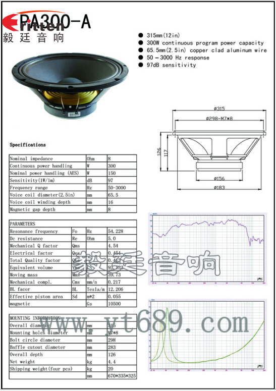 此款12寸150w低音喇叭,舞臺音箱的額定功率為150W,最大峰值300W,音域50Hz~3KHz,超重低音炮,下潛力深,東莞市毅廷音響科技有限公司嚴格貫徹質(zhì)量讓您放心、服務讓您舒心、價格讓您動心。