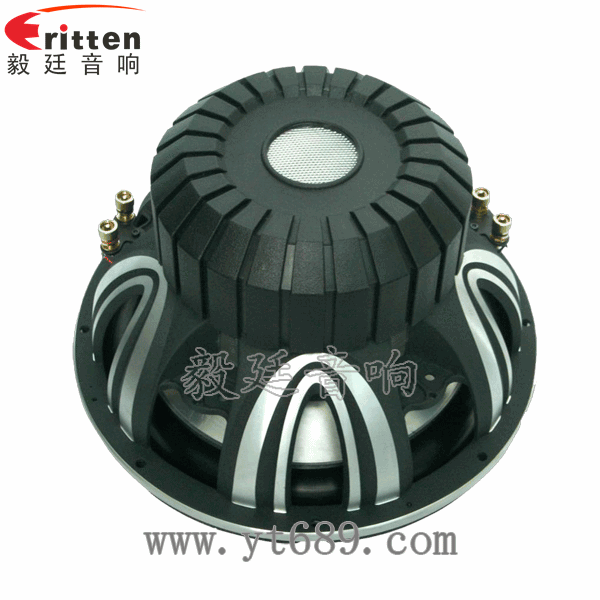 12寸圓形重低音喇叭,采用了高純度的鋁盆架,加強(qiáng)加寬壓鑄磨砂,承載著大型磁路和振動(dòng)系統(tǒng),保證了大功率工作時(shí)的穩(wěn)定性;