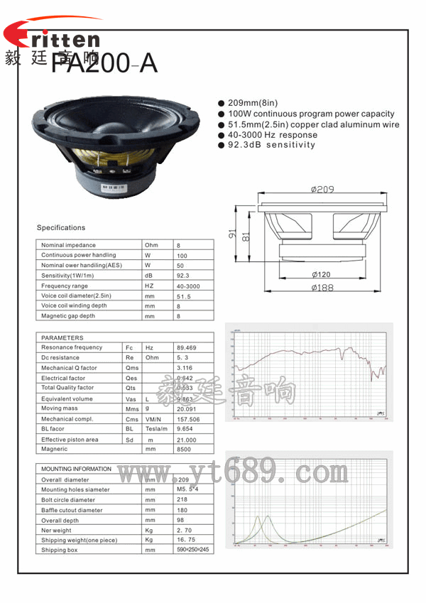 209mm圓型鋁盆架外磁重低音喇叭,采用的是超強的鐵氧體磁鋼,磁性強,動力足,瞬間響應快;