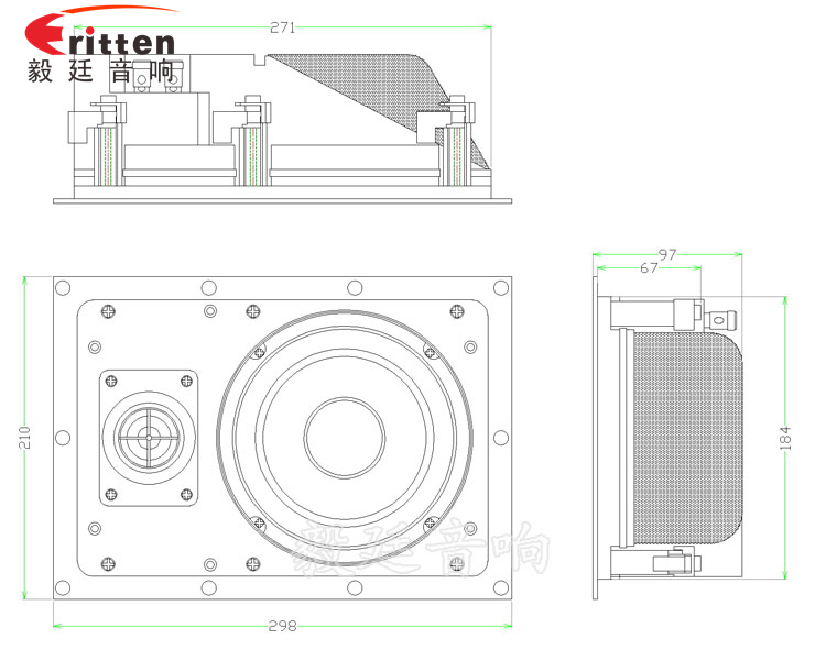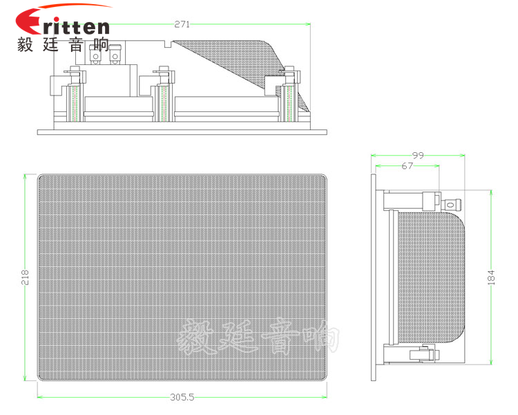 6.5寸方型外磁帶網(wǎng)罩全頻喇叭,采用的是精美的銅材質(zhì)按壓式接線端子,配紅黑正負(fù)極,接線方便;