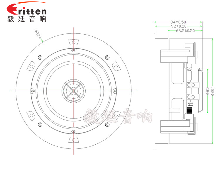 采用的是頂級(jí)元件±3dB分頻器,可完美的控制揚(yáng)聲器的中、高、低音,對(duì)角四個(gè)可旋轉(zhuǎn)卡扣柱,用于天花喇叭倒掛方式安裝,方便牢固,頻響寬,失真小,信噪比好。