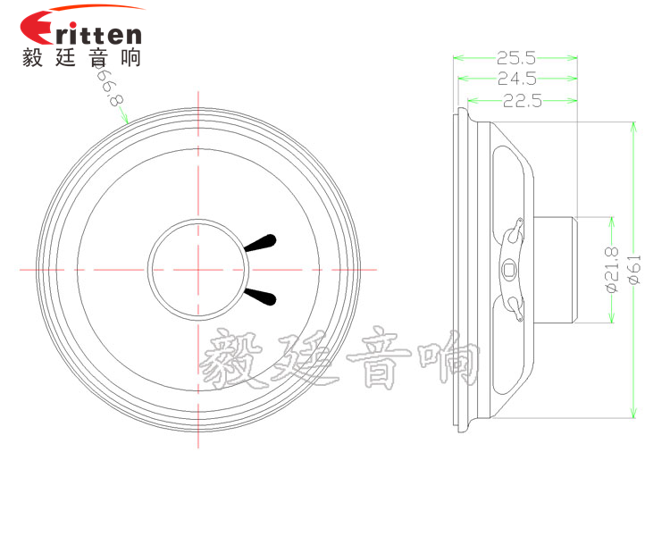 2.5寸圓型鐵盆架內(nèi)磁全頻喇叭, 采用的是高性質(zhì)稀土高強(qiáng)磁,音色清晰、飽滿;