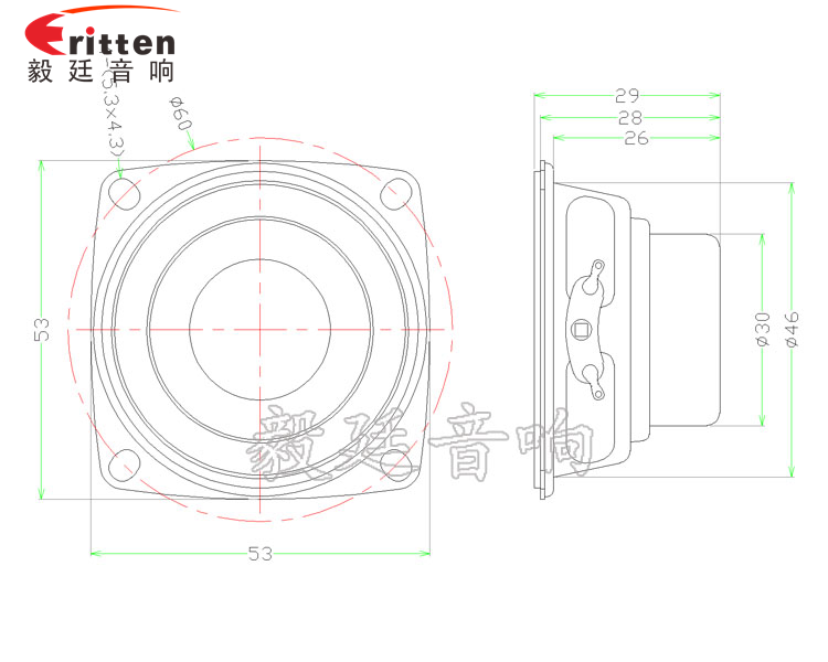 53mm方型鐵盆架內(nèi)磁全頻喇叭,采用的是稀土高強(qiáng)磁,使音色清晰、飽滿;