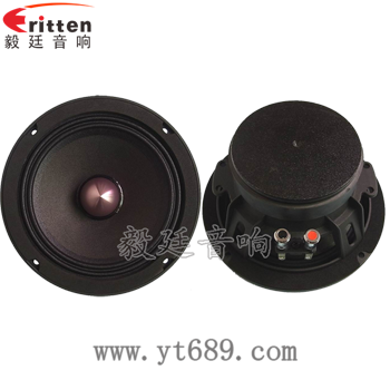 6.5寸圓形塑料盆架外磁中低音喇叭,采用的是黑色烤漆,精巧細(xì)致的設(shè)計,使得盆架格外強(qiáng)韌穩(wěn)固,銅材質(zhì)鍍金按壓式接線端子,配上紅黑正負(fù)極之分,接線方便。